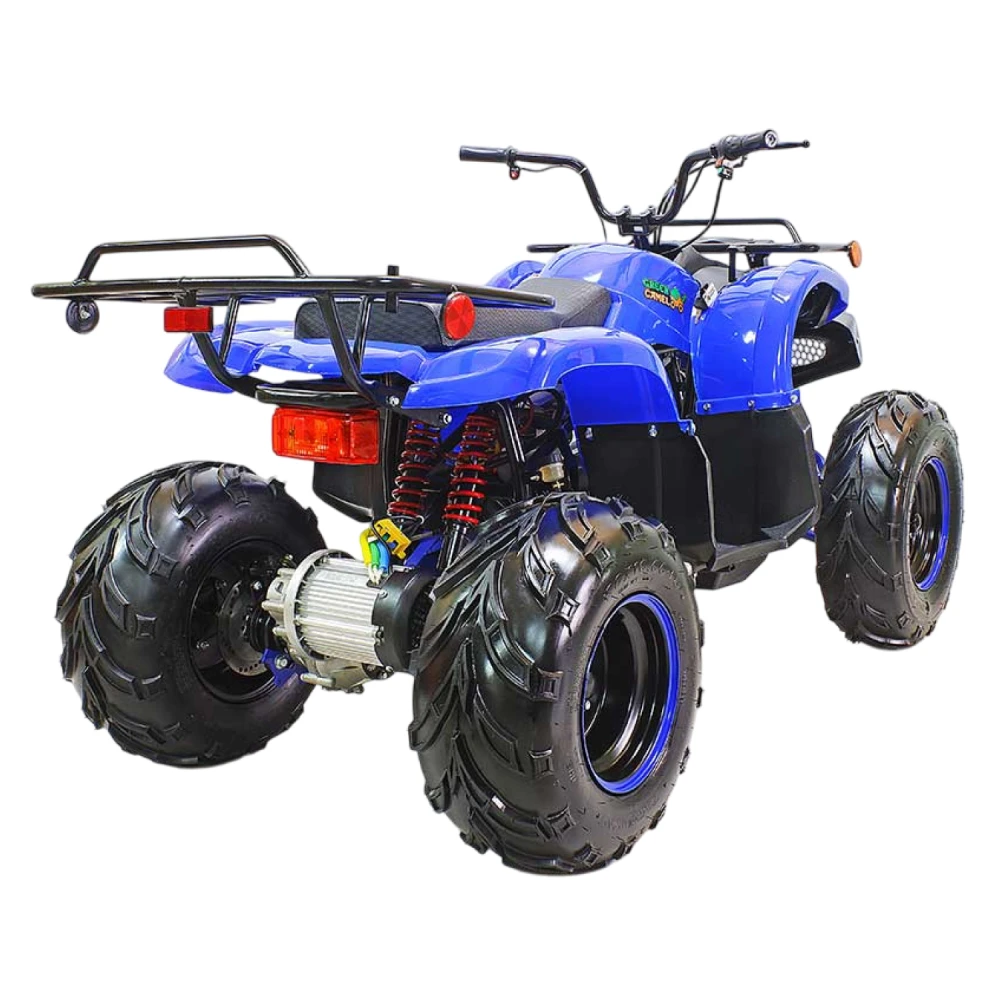 У GreenCamel Caxapa A1520 бесщеточный мотор типа BLDC, на выбор два вида батарей, штатная и более мощная. Разница заключается в запасе хода, ресурса и время зарядки батареи. Пружинные амортизаторы, тип передачи: дифференциал. Тормоза задние: ножной дисковый, передние тормоза барабанные. Пробег на одном заряде от 40 до 80 км. Зависит от выбранной зарядной батареи. У квадроцикла отсутствует спидометр. Максимальная нагрузка 125 кг.