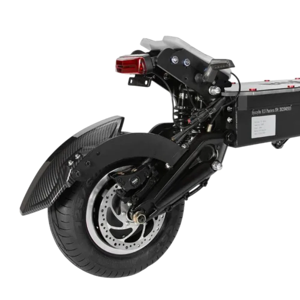 Электросамокат Syccyba Goliaf — полноприводный внедорожник премиум-класса с пиковой мощностью 11000 Вт, максимальной скоростью 110 км/ч, пробегом до 100 км и грузоподъемностью до 150 кг, предназначенный для экстремальной езды по бездорожью.​​