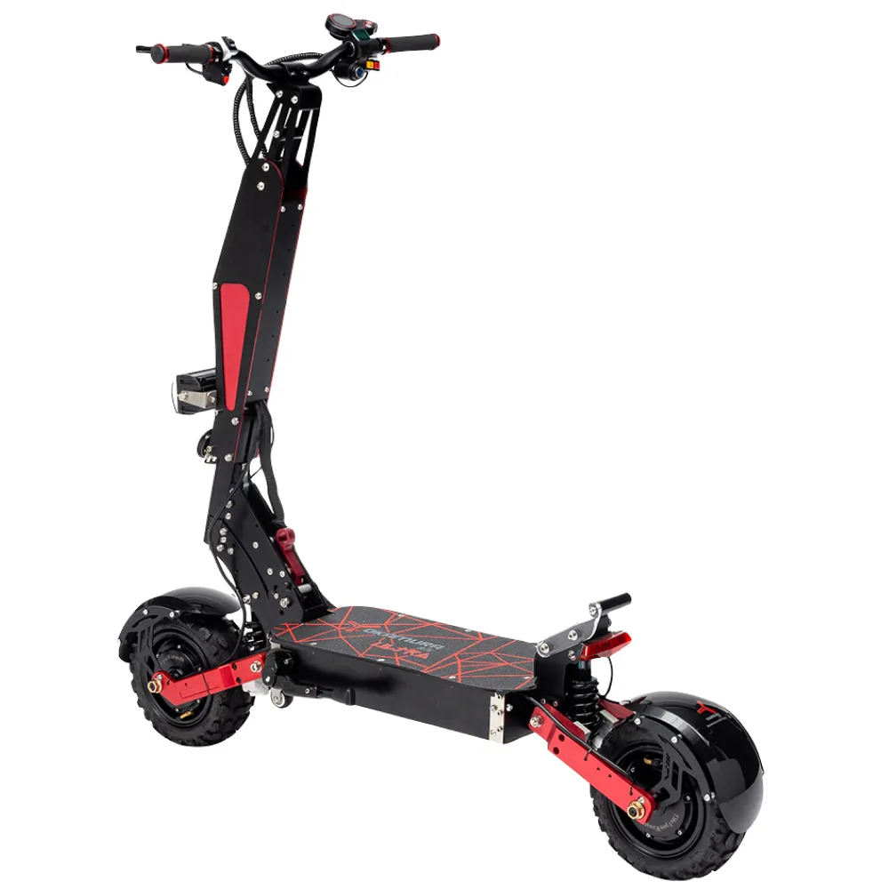 Аккумуляторные батареи нового поколения обеспечивают беспрецедентный запас хода. Теперь проехать 80 км на одном заряде – это реальность, благодаря электросамокату Yokamura Ultra. Новые технологии в конструкции данного самоката, такие как синусные контроллеры, обеспечивают полный контроль при разгоне и торможении, а также плавность хода и легкость управления. Кроме того, данный электросамокат обладает высокими внедорожными характеристиками благодаря 11 дюймовым колесам и мощному мотору. Самокат изготовлен из прочного алюминиевого сплава.