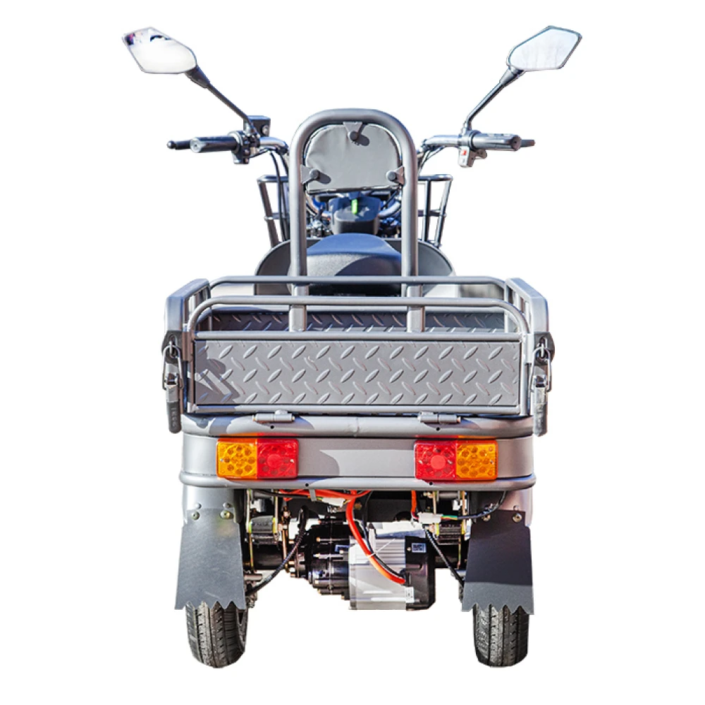 Электротрицикл оснащен мощным двигателем мощностью 1000 Вт, что обеспечивает достаточную мощность для перевозки грузов весом до 200 кг. Привод задний, что позволяет обеспечить хорошую устойчивость и маневренность при движении.