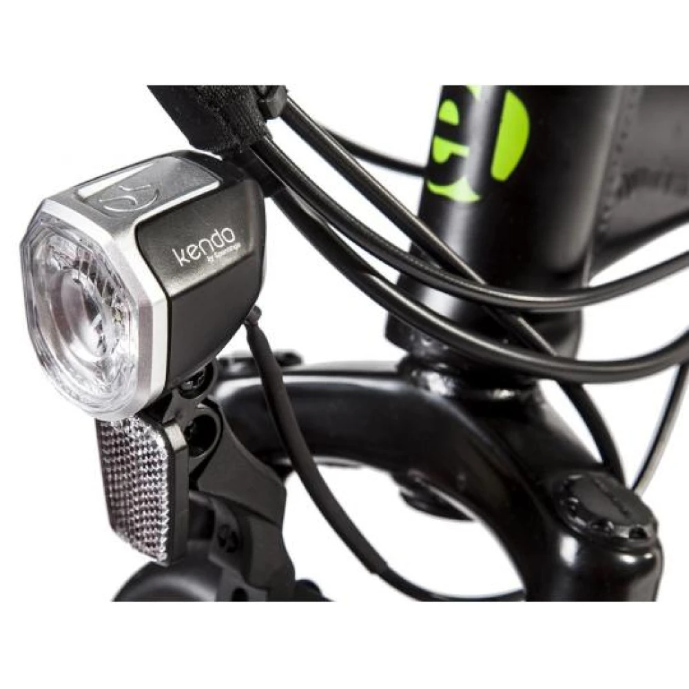 Электровелосипед Eltreco TT New Spoke имеет багажник, впереди яркая фара, сзади красный стоп-сигнал.