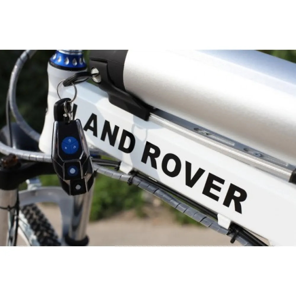 Электровелосипед LandRover имеет амортизацию вилки, тормозная система на два колеса дисковая. Световое освещение и информационную панель. Конструкция рамы достаточно прочная, выполнена из алюминия, складного типа. В сложенном состоянии легко помещается в багажник автомобиля.