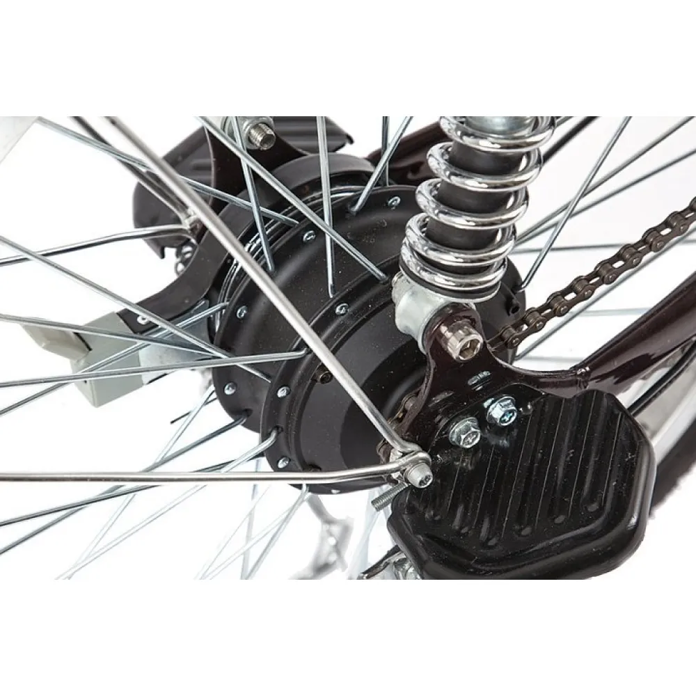 Мощность велогибрита – 500 Вт. Имеется передняя дисковая и задняя тормозная системы, пружинные амортизаторы, передняя фара. Купить технику прямо сейчас можно по телефону и в онлайн-режиме. Ждем ваших звонков!